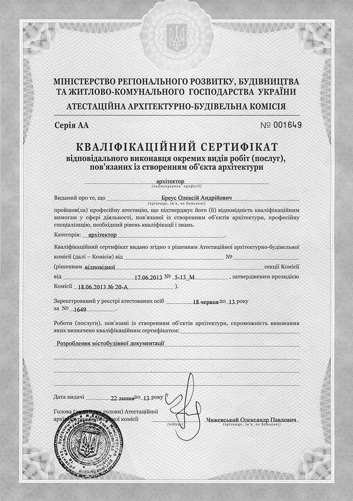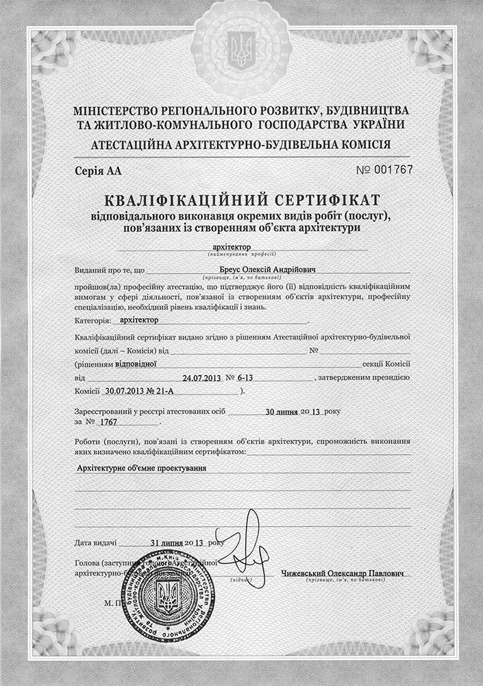 Архітектурна майстерня Бреуса Олексія займає стабільну та впевнену позицію на ринку України понад 14 років. Майстерня організована на базі згуртованого колективу професіоналів, що формувався протягом кількох років із 2006р. На даний момент завдяки своїм співробітникам компанія може пишатися налагодженим процесом проектування та реалізації об'єктів.