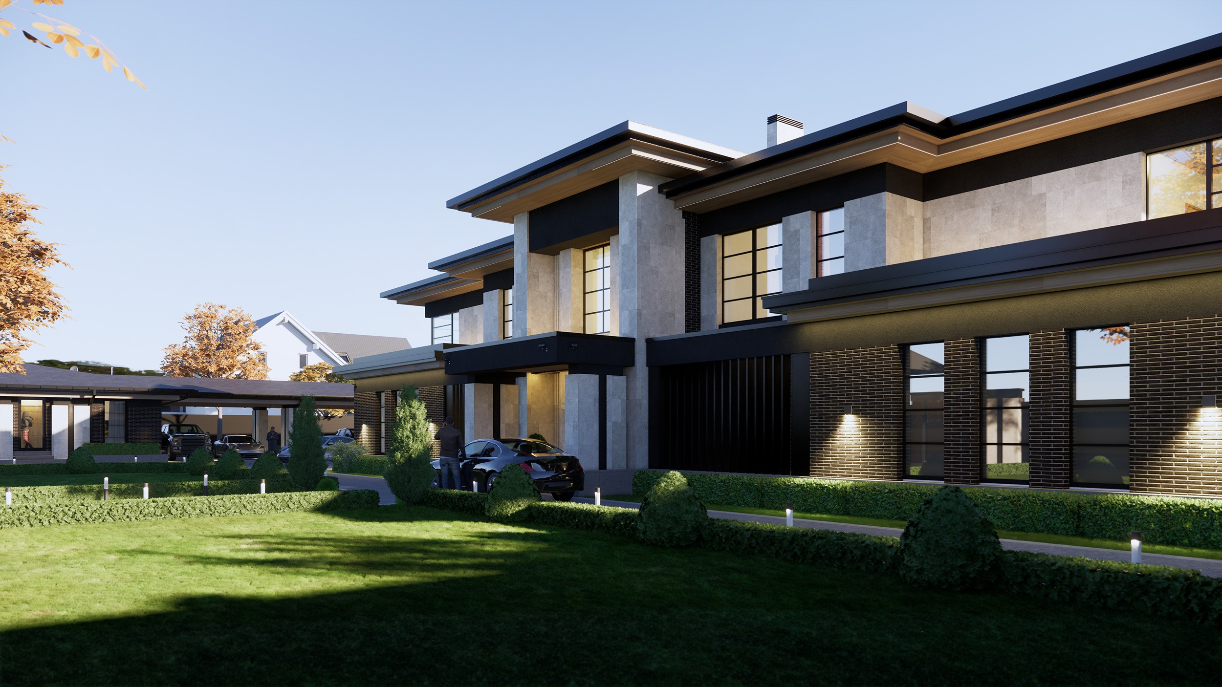 Нові завдання вимагали кардинальних змін. Ми суттєво переробили планування, враховуючи сучасні функціональні вимоги та естетику. Для цього довелося демонтувати частину конструкцій і укріпити слабкі зони. Однак вдалося значно поліпшити функціонал будинку і привести його у відповідність класу будівлі. Одним із найскладніших рішень стало зняття частини фасаду з німецької цегли — цей крок був болючим, але необхідним для досягнення результату. Нариси на тему Райта сформували стиль екстерʼєру, надаючи йому контрастів та динаміки.