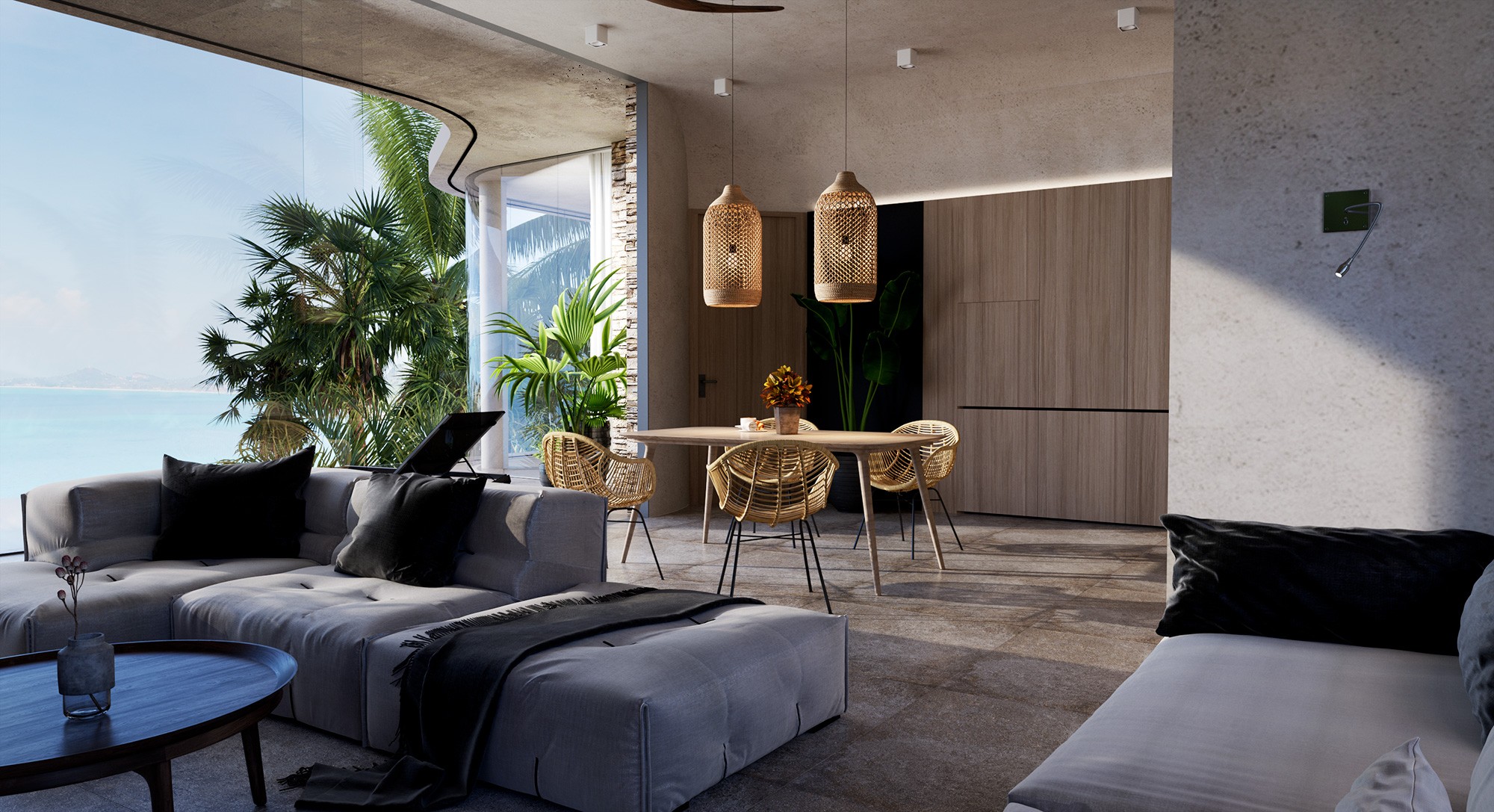 - Концепція формувалася на підставі аналізу психології потенційного азіатського користувача. На початку пошуку було розглянуто кілька напрямків, та зупинилися ми на м’яких сучасних формах що дають змогу відволіктися від буденності прямих кутів та насолодитися відпочинком, акцентуючи увагу на природніх скарбах та близьких людях.