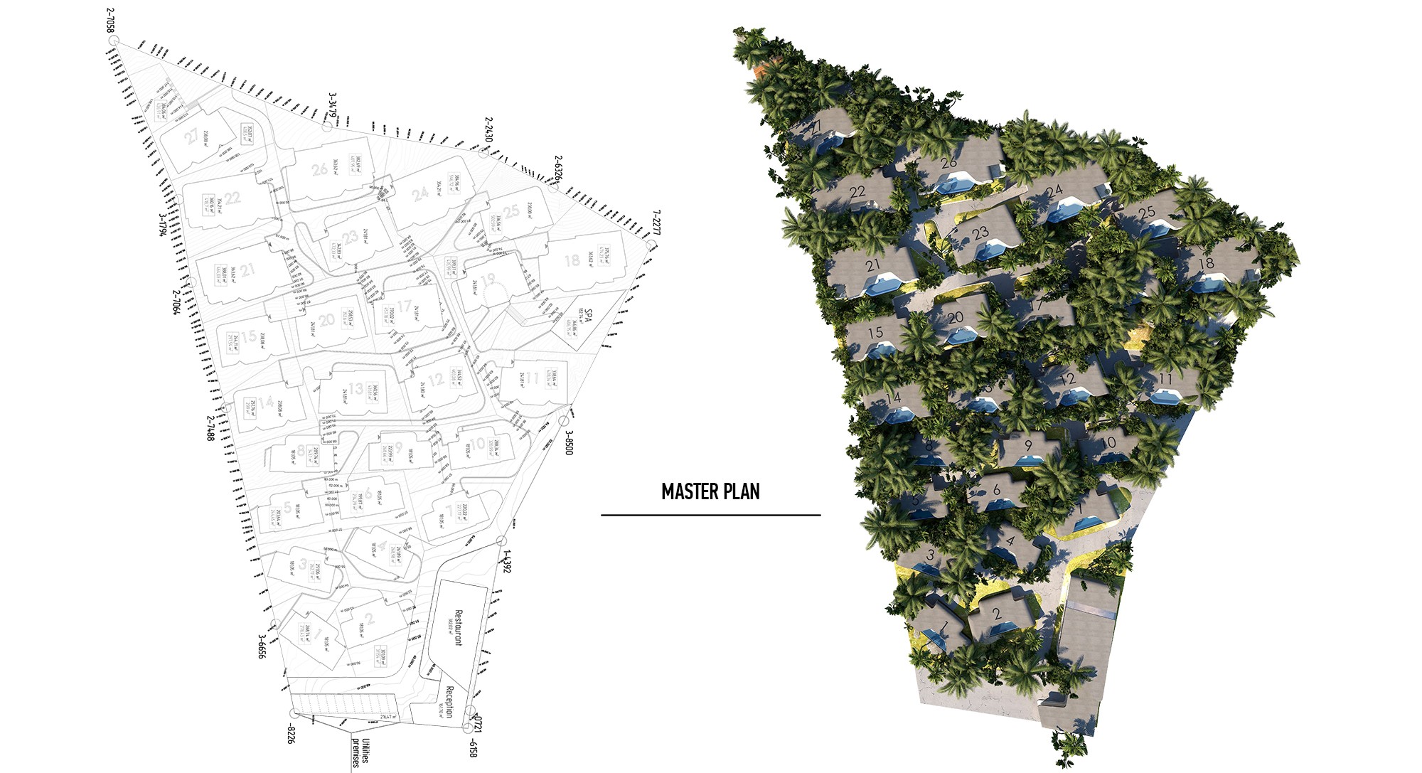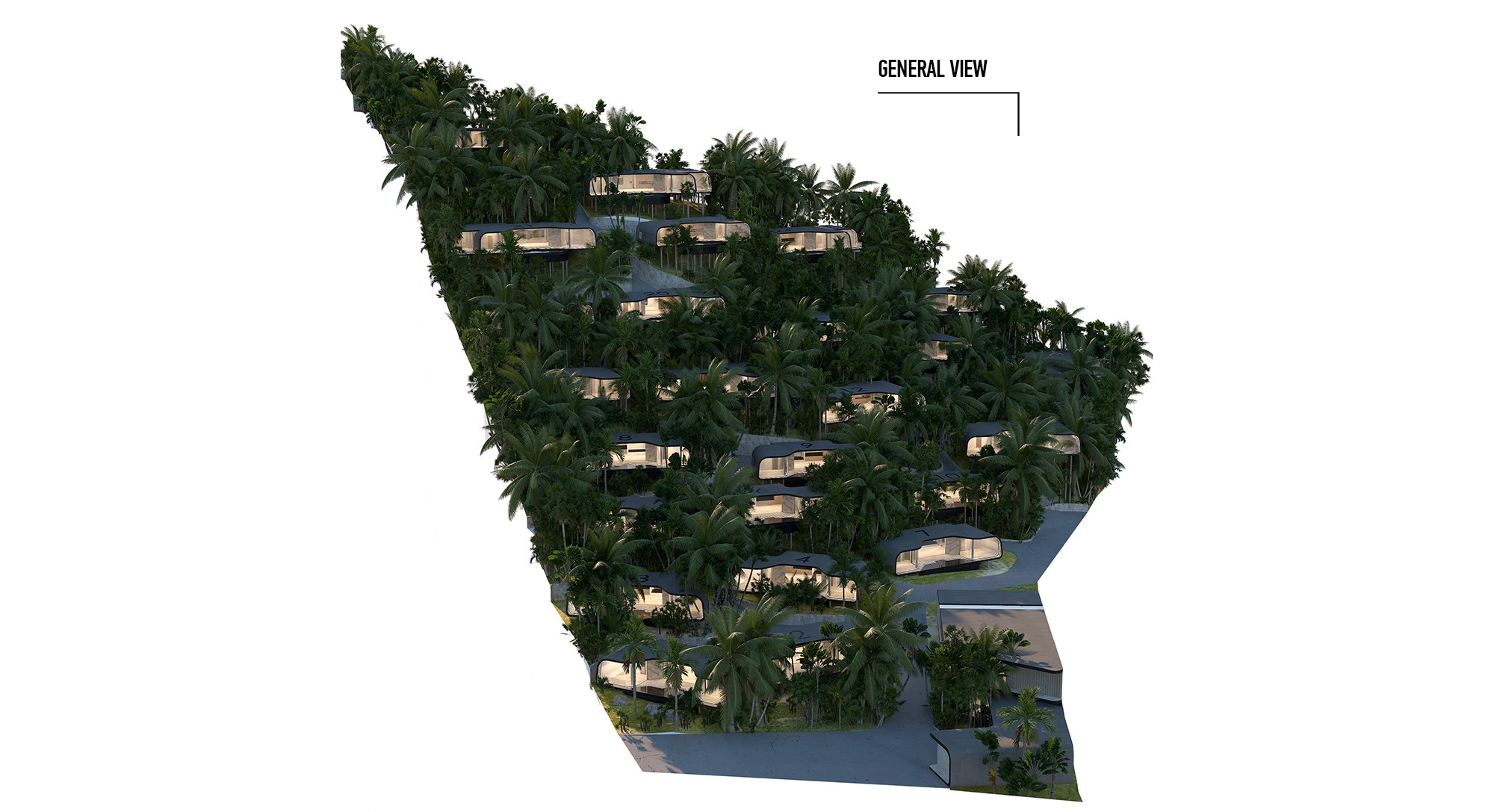 - Перепад по ділянці в 82 м дає можливість за ущільненої посадки, створення відчуття камерності кожної вілли та відкритих панорам на Сіамську затоку.